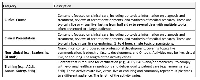 *Category. Choose the category that is appropriate for this activity from the table below. This selection will not appear on the course catalog.