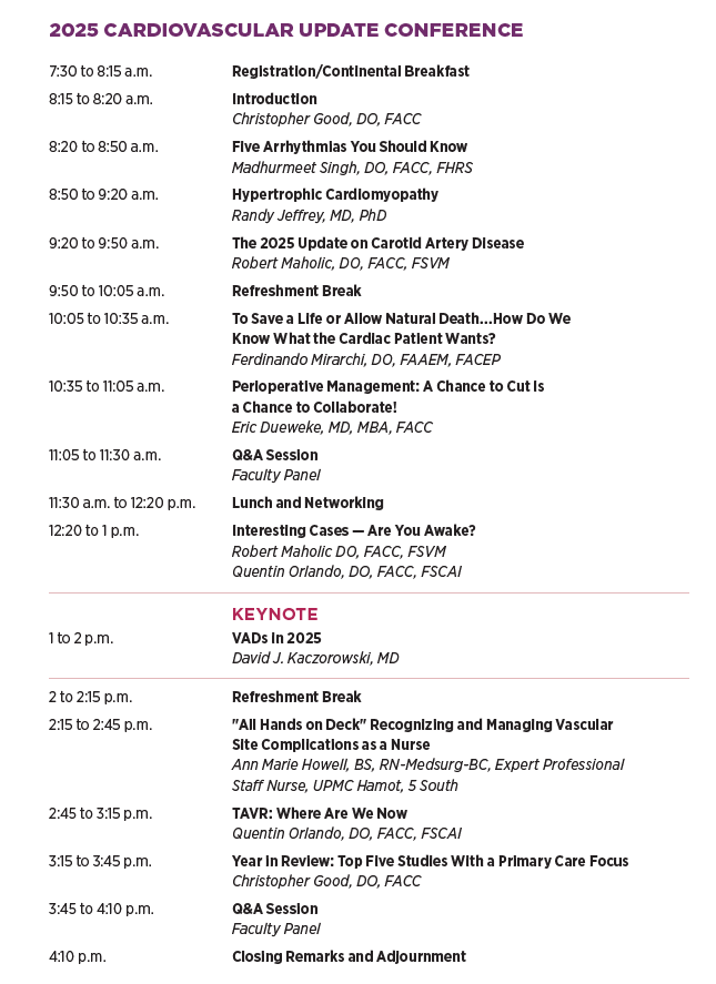 Join your colleagues and gain the latest updates and practice guidelines in cardiovascular care!